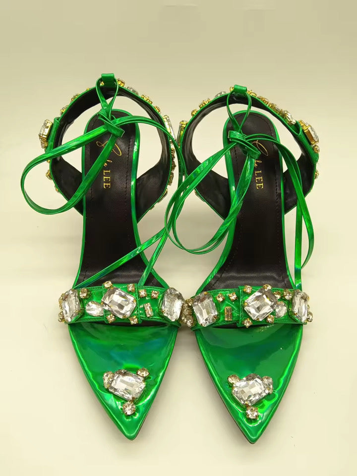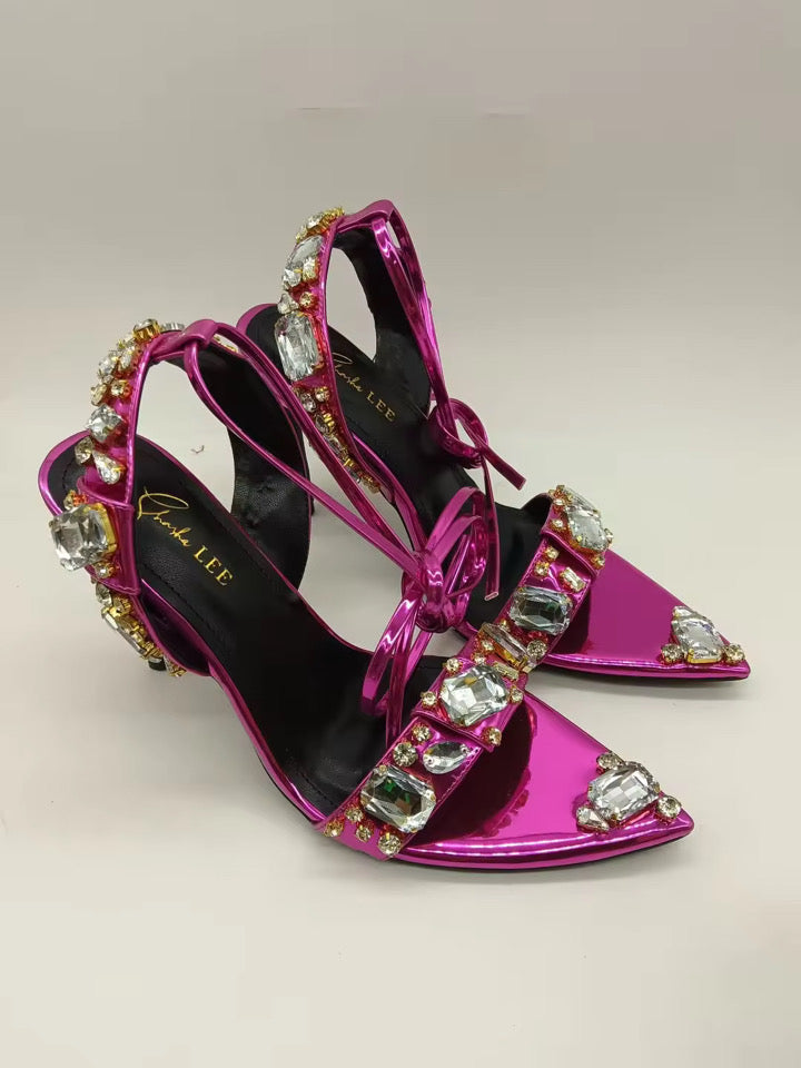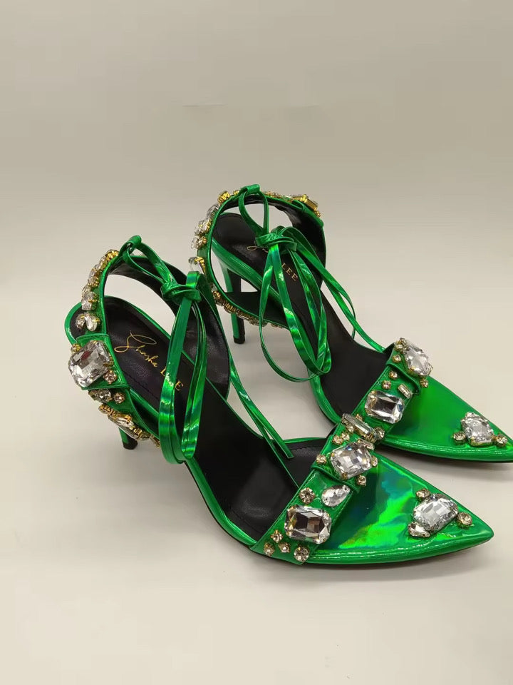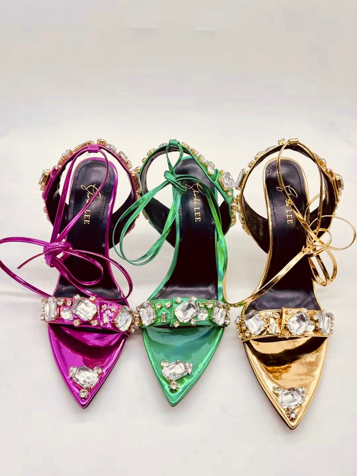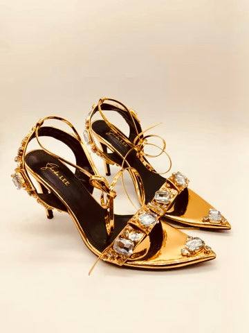 An opulent statement stiletto with dazzling stones designed for women who arrive before they speak.